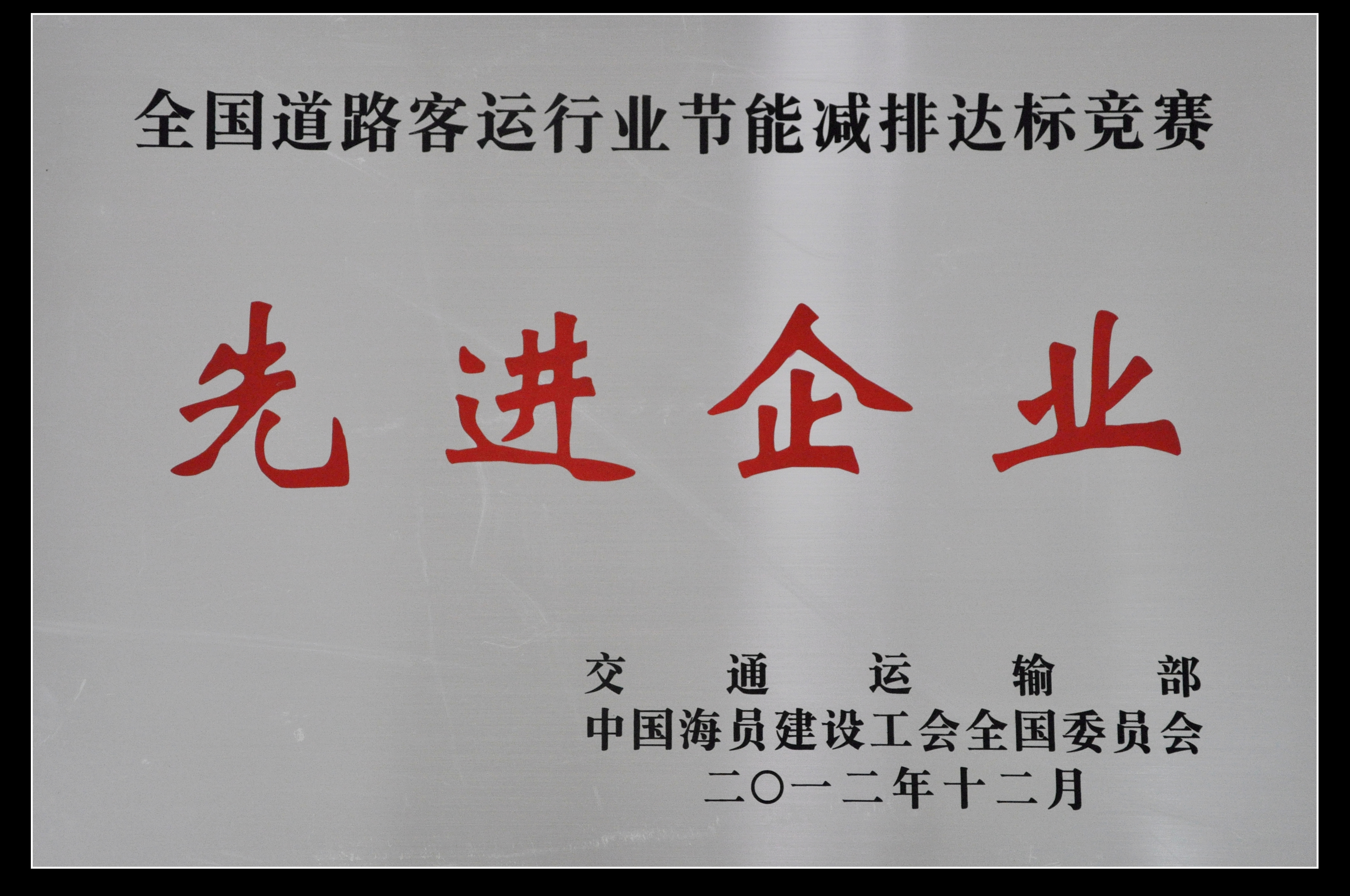 我司榮獲“全國(guó)道路客運(yùn)行業(yè)節(jié)能減排達(dá)標(biāo)競(jìng)賽先進(jìn)企業(yè)”稱號(hào)