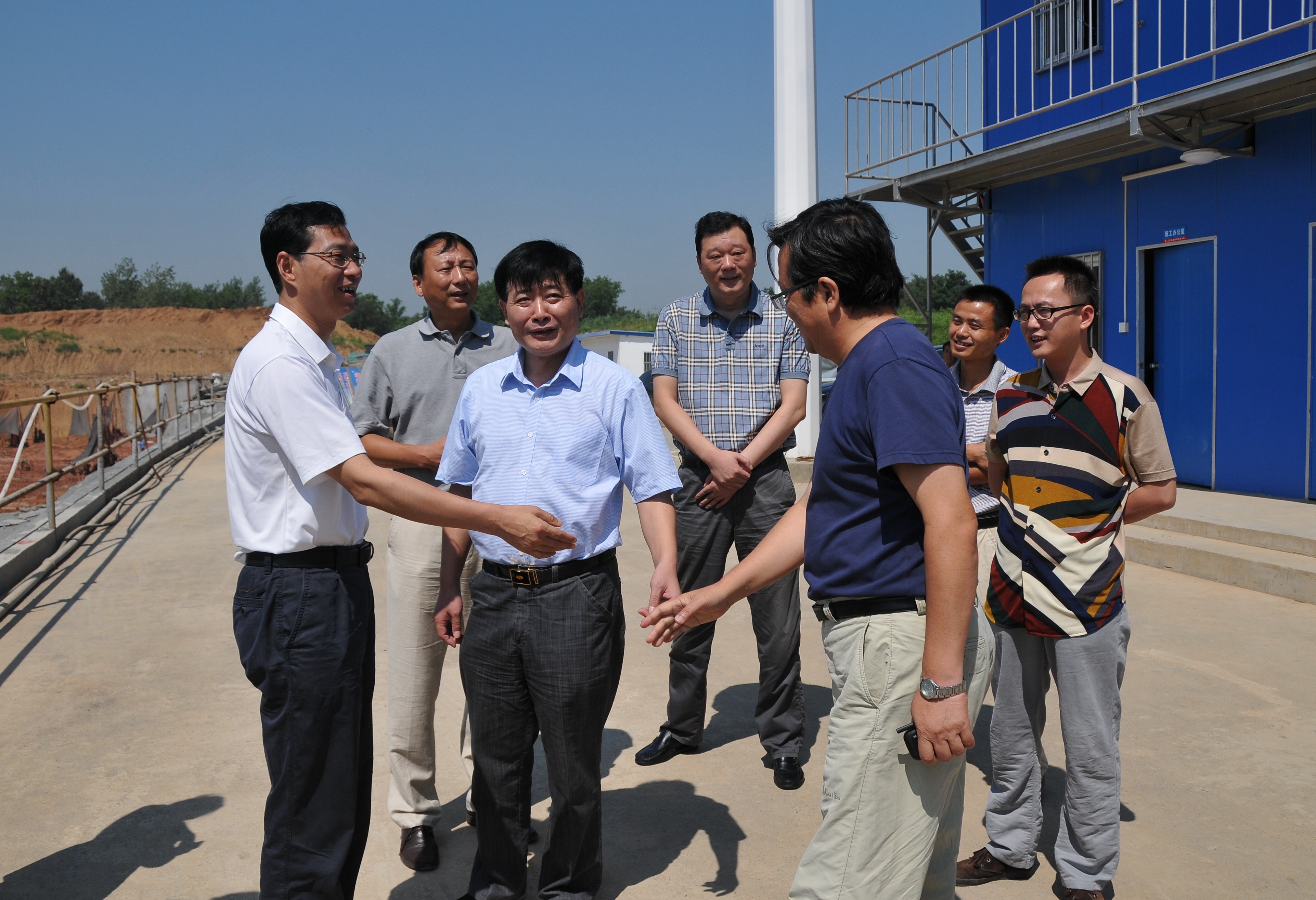 8月7日上午,市交通產(chǎn)業(yè)集團(tuán)新任董事長(zhǎng)、總經(jīng)理、黨委書(shū)記周正權(quán),副總經(jīng)理王寧生、王進(jìn)一行,頂著烈日,冒著高溫,來(lái)到揚(yáng)州西部交通客運(yùn)樞紐建設(shè)工地,慰問(wèn)堅(jiān)守在一線(xiàn)的工程建設(shè)者,并送上飲料和慰問(wèn)金。集團(tuán)公司總經(jīng)理、黨委書(shū)記吳忠俊匯報(bào)了工程建設(shè)進(jìn)展情況。