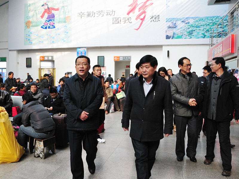 春節(jié)將至,為確保生產(chǎn)安全,讓群眾過一個歡樂祥和的節(jié)日,1月26日下午,市委常委、常務(wù)副市長丁純帶領(lǐng)市公安局、安監(jiān)局等相關(guān)部門負(fù)責(zé)人,來到揚(yáng)州站檢查春運(yùn)情況,向奮戰(zhàn)在春運(yùn)一線的干部職工表示慰問。