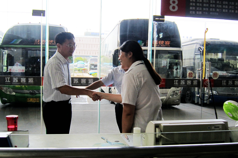 8月8日下午,市委常委、副市長姚蘇華在市政協(xié)秘書長、市交通運輸局局長王駿,市政府副秘書長、政府辦主任湯天波,揚州交通產(chǎn)業(yè)集團董事長凌衛(wèi)東、市運管處處長居遠(yuǎn)山等陪同下來到揚州汽車東站慰問高溫下戰(zhàn)斗在一線的干部職工。集團公司領(lǐng)導(dǎo)吳忠俊、顧懷、萬雷、陳家宏陪同慰問。