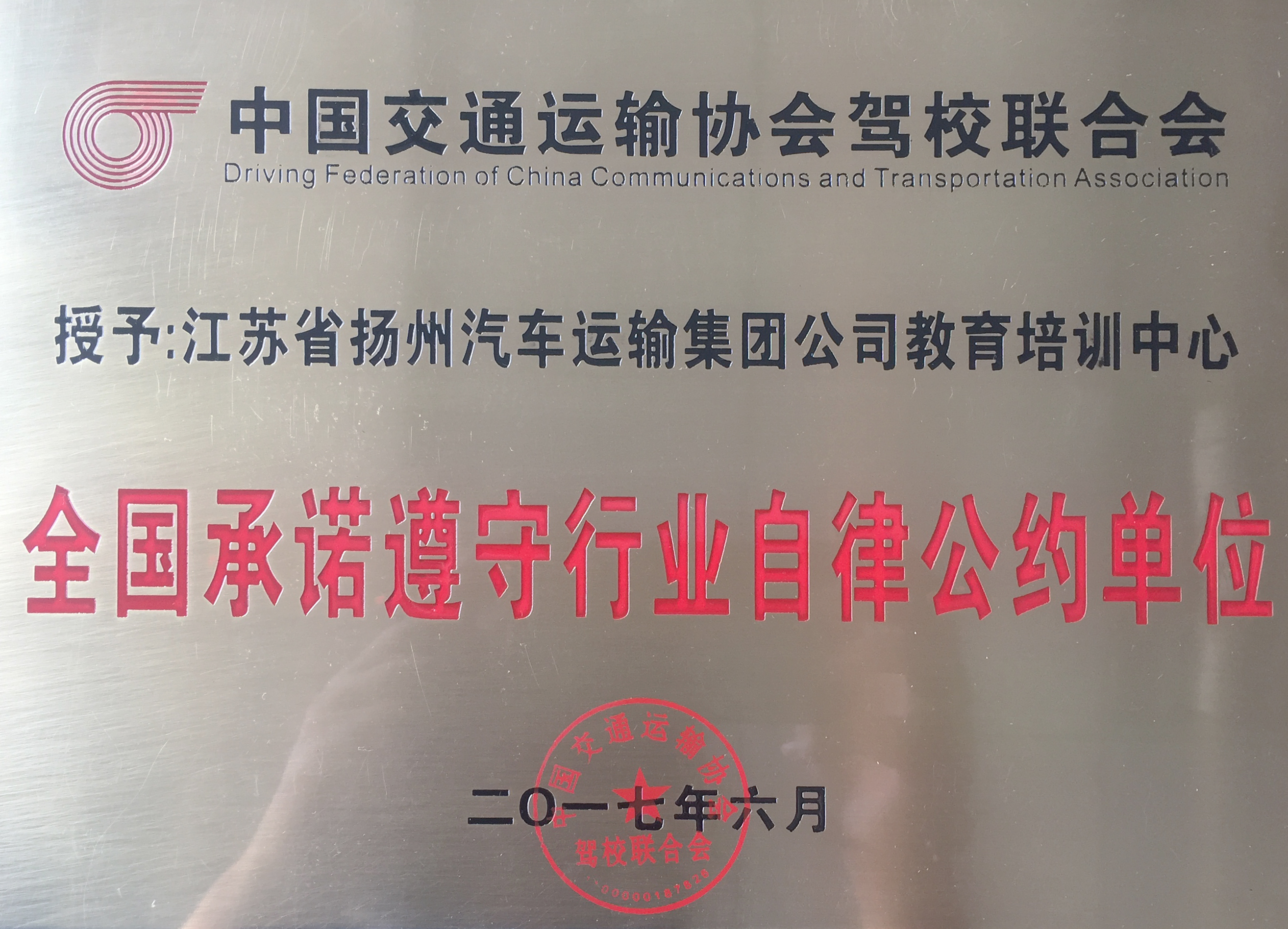 揚(yáng)汽駕校再獲“全國(guó)行業(yè)自律先進(jìn)駕校”