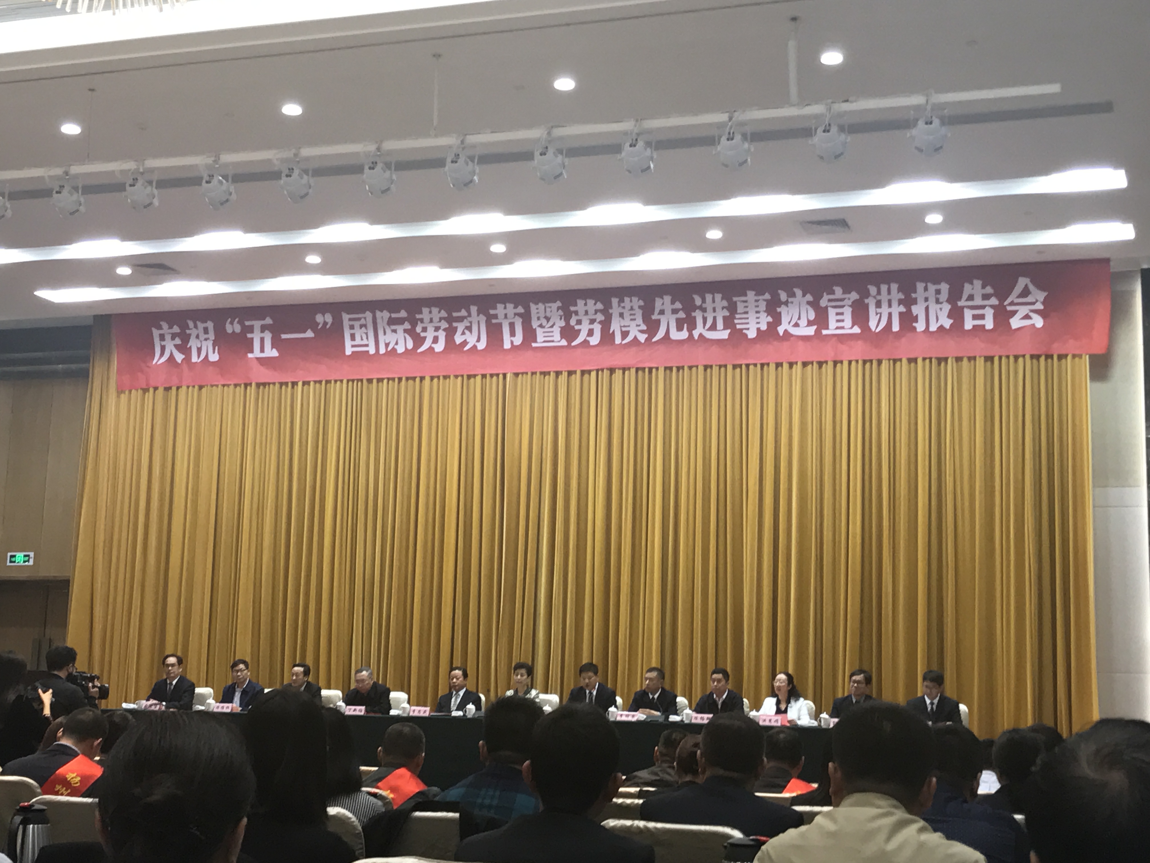 4月27日下午,市委、市政府在揚(yáng)州明月湖酒店三樓會(huì)議廳舉行慶祝“五一”國(guó)際勞動(dòng)節(jié)暨勞模先進(jìn)事跡宣講報(bào)告會(huì),揚(yáng)州各縣(市、區(qū))總工會(huì)、功能區(qū)工會(huì)和市直各產(chǎn)業(yè)工會(huì)的工會(huì)主席,受表彰的2018年全國(guó)、省、市五一勞動(dòng)獎(jiǎng)?wù)潞凸と讼蠕h號(hào)獲得者代表及職工代表近300人參加會(huì)議。會(huì)上,揚(yáng)汽集團(tuán)修理廠職工劉東、汽車站服務(wù)班分別獲頒“揚(yáng)州市五一勞動(dòng)獎(jiǎng)?wù)?rdquo;、“揚(yáng)州市工人先鋒號(hào)”榮譽(yù)稱號(hào)。