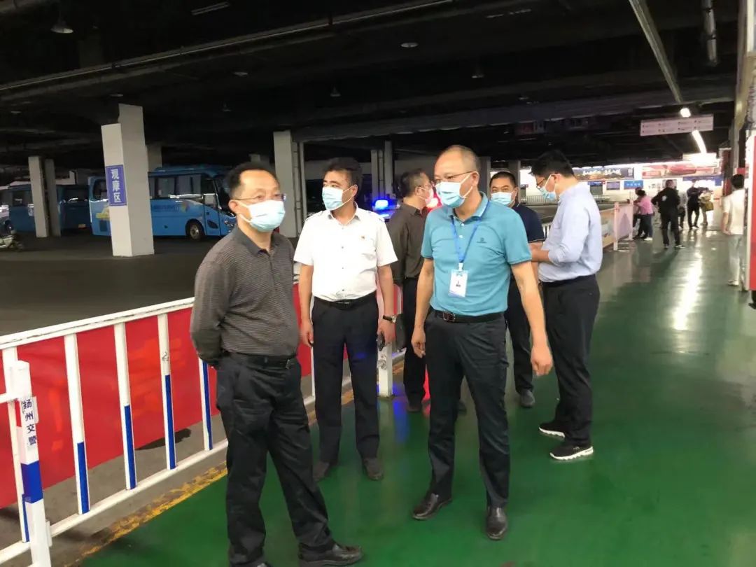 9月30日下午,市交通運輸局副局長楊步云帶隊督導(dǎo)檢查揚州汽車站國慶節(jié)前疫情防控工作,揚汽集團副總經(jīng)理徐建波及相關(guān)部門負責人陪同檢查。