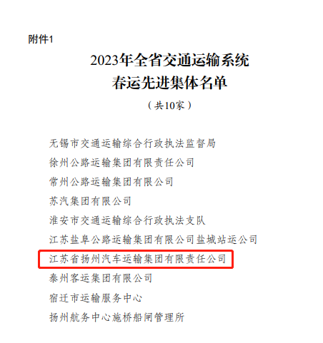揚(yáng)汽集團(tuán)榮獲“省交通運(yùn)輸系統(tǒng)春運(yùn)先進(jìn)集體”稱號