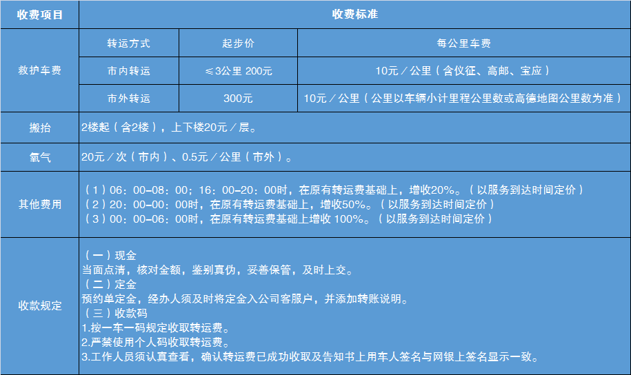 綜合衡量患者病情、轉(zhuǎn)運距離、設(shè)備和人員配備等因素,目前非院前急救收費標(biāo)準(zhǔn)如下: