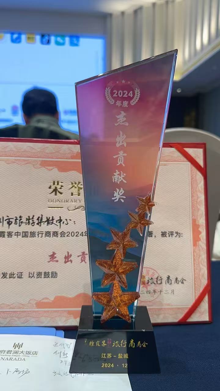 近日,揚州市旅游集散中心被徐霞客中國旅行商商會授予“2024年度杰出貢獻獎”三等獎。