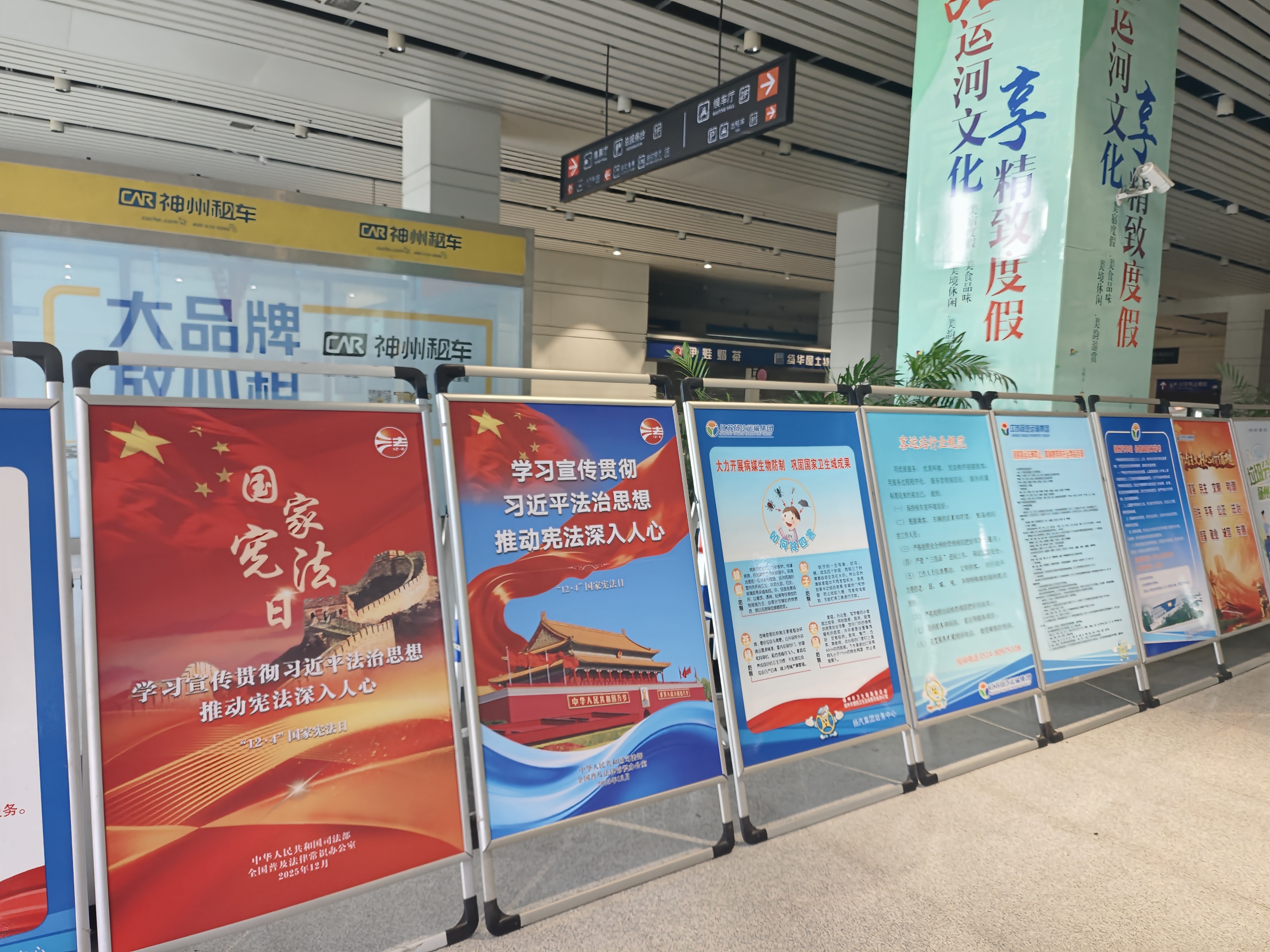 為營造濃厚宣傳氛圍,集團(tuán)充分利用線上線下宣傳陣地。在線下,集團(tuán)充分利用交通服務(wù)窗口優(yōu)勢,在東部樞紐、西部樞紐的候車區(qū),科目三考場候場區(qū)及集團(tuán)辦公區(qū)等場所,不僅通過電子大屏滾動播放宣傳內(nèi)容,還精心布置了系列主題戧牌,使憲法知識融入日常工作與服務(wù)場景。線上宣傳同步推進(jìn),通過發(fā)放學(xué)習(xí)資料,擴(kuò)大了宣傳的覆蓋面和靈活性。